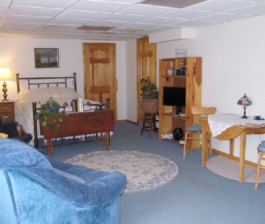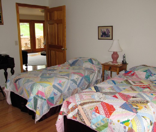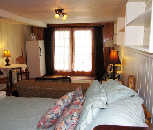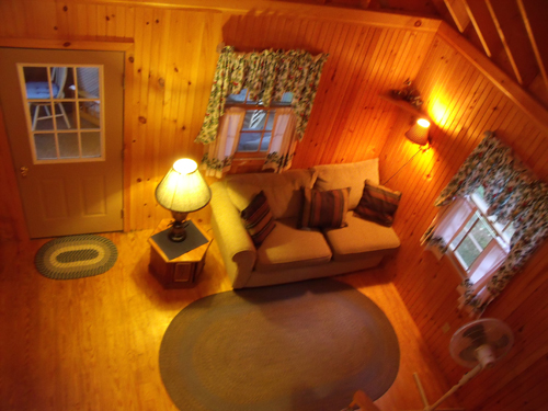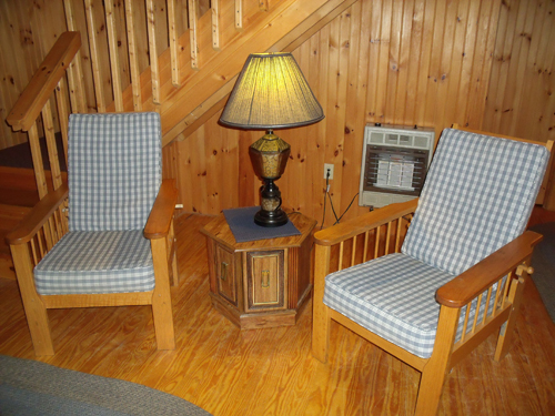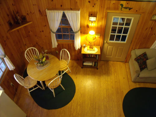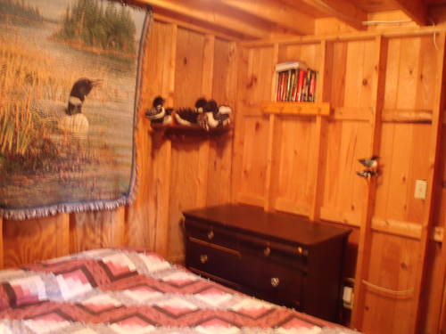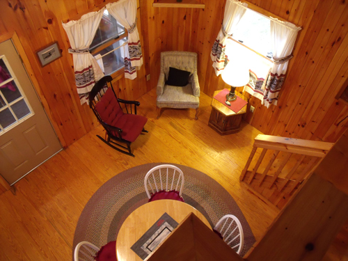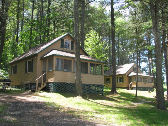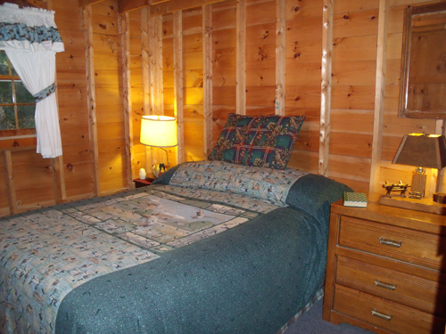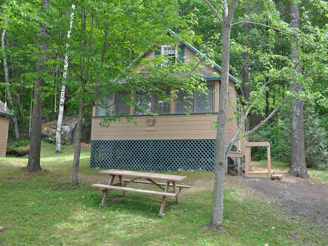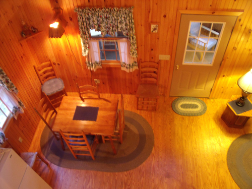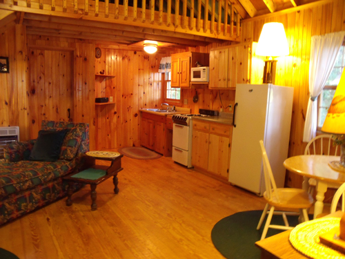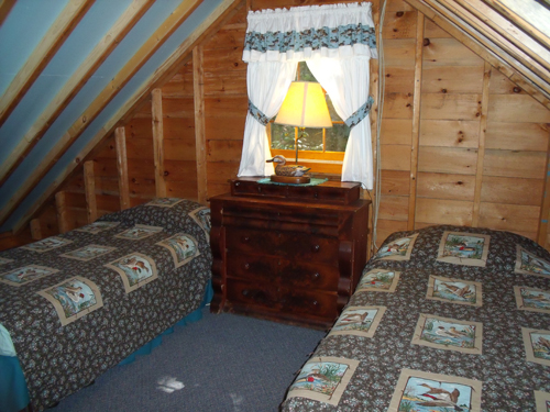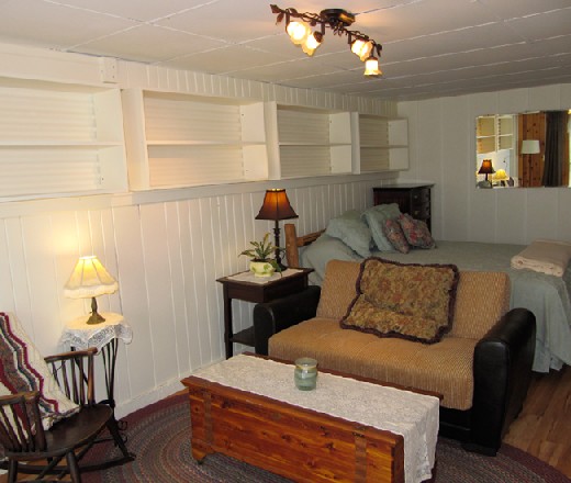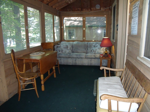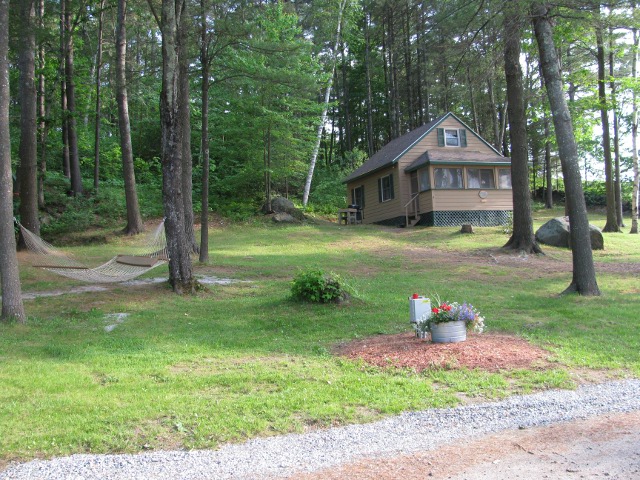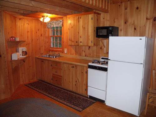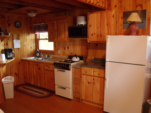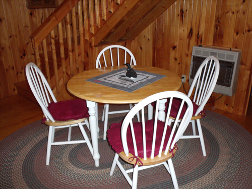 The first cottage built, actually built by Richard himself, was the template for each and every one of the cottages that followed. Throughout Loon cottage is the evidence of Barbara's attention to detail; from the loon decor, to the handmade quilts on the beds. The Loon cottage's location offers both privacy and a close proximity to the recreation field. The cottage features a front porch that allows guests to enjoy a view to exceptional sunsets, Androscoggin Lake and Angell Cove's private beach. The cozy interior, highlighting the loon motif, features solid pine paneling, comfortable furniture and accessories with a predominantly burgundy and blue color scheme.